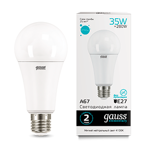 Лампа светодиодная 35 Вт A67 грушевидная 4100К нейтральный белый E27 2740 лм 220В от GAUSS - это энергоэффективное решение для равномерного и комфортного освещения помещений с высокими требованиями к качеству света. Модель сочетает высокую яркость, долгий срок службы и надежную сборку, подходящую как для дома, так и для профессиональных интерьеров.