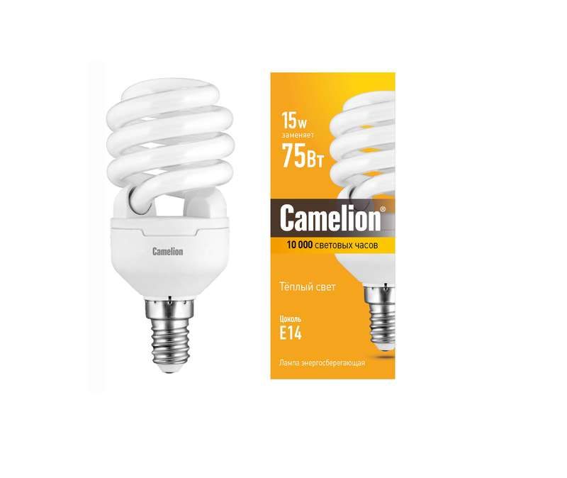 Лампа люминесцентная компактная LH FS T2 M 15Вт E14 спиральная 2700К Camelion 10595 - это энергоэффективное осветительное устройство, предназначенное для использования в бытовых и коммерческих помещениях. Она обладает рядом преимуществ, которые делают ее привлекательным выбором: