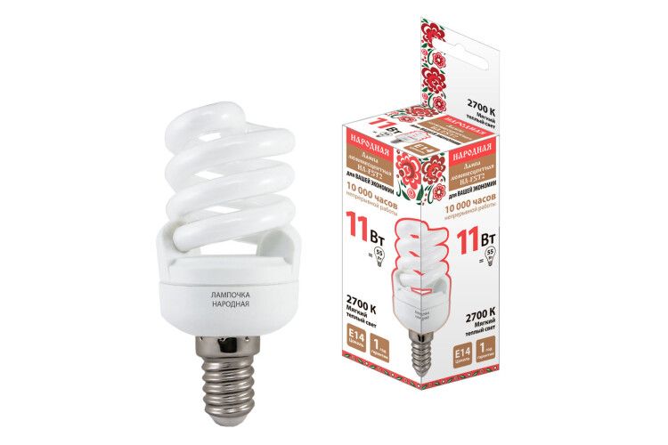 Лампа энергосберегающая КЛЛ 11Вт E14 827 cпираль НЛ-FSТ2 40х93мм | SQ0347-0017 TDM