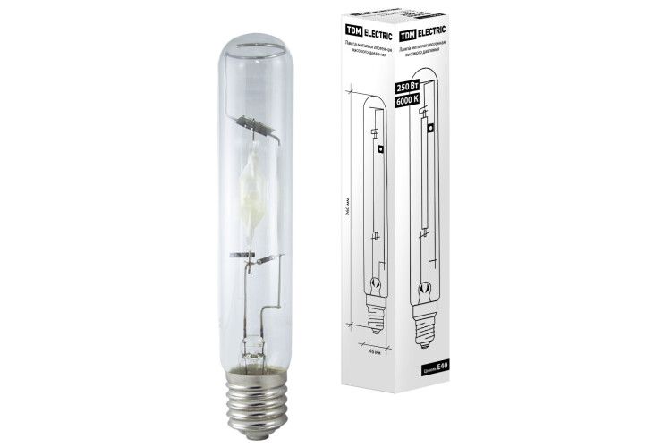 Лампа металлогалогенная 250 Вт Е40 6000 К от TDM ELECTRIC (артикул sq0325-0016) - источник яркого холодного белого света для профессионального наружного и интерьерного освещения, требующего высокой точности цветопередачи и долговечности.