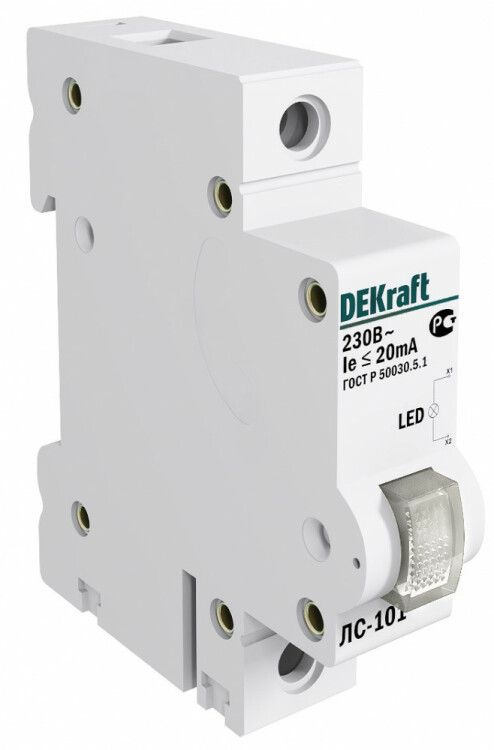 Лампа сигнальная светодиодная ЛС-101 на DIN-рейку 1P красная 220В от DEKraft - компактный индикатор для визуального отображения состояния цепи в щитах управления. Подходит для монтажа на стандартную DIN-рейку, работает от сети 230 В переменного тока и обеспечивает надёжную сигналку даже в условиях слабой освещённости.