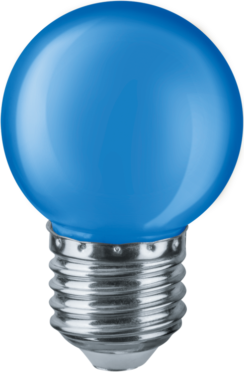 Лампа светодиодная 1 Вт Е27 синий шар 230 В предназначена исключительно для декоративного освещения. Не используется для основного освещения помещений из-за низкой мощности. Применяется в ночниках, подсветке зеркал, витрин, интерьере кафе, детских комнат, новогодних украшениях и других случаях, где важна эстетика, а не яркость.
