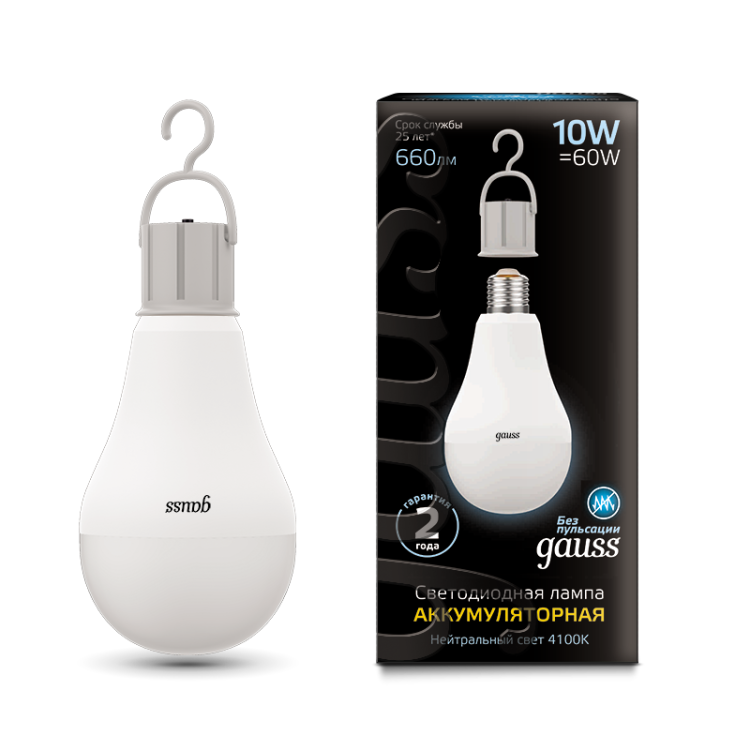 Лампа светодиодная LED A60 10Вт 660лм 4100К E27 с Li-Ion аккумулятором от GAUSS сочетает функции обычного источника света и автономного аварийного освещения. Она работает от сети 220 В, а при отключении электроэнергии переходит на питание от встроенного аккумулятора - идеально для дома, дачи или внезапных отключений.