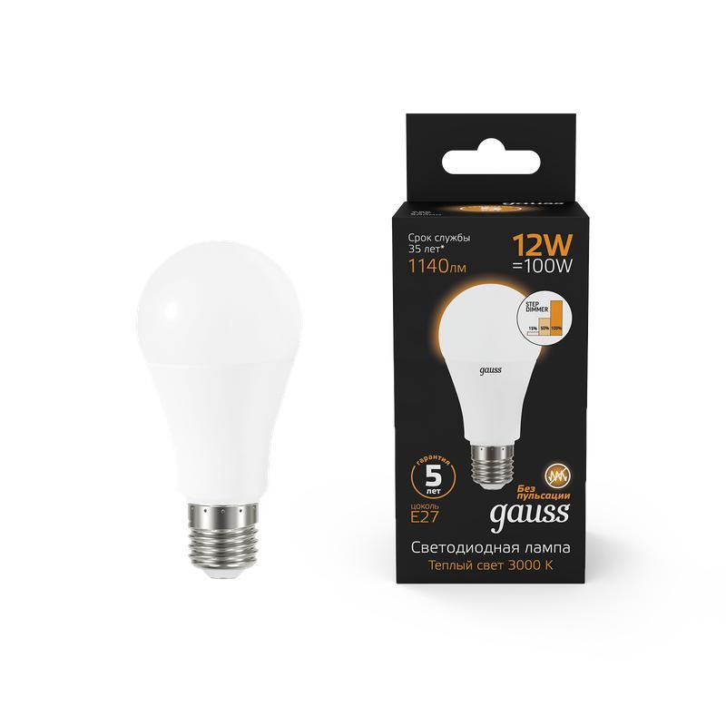 | Лампа светодиодная A60 12W 1140lm 3000K Е27 шаг. диммирование LED 1/10/50 | 102502112-S | Gauss | 26.02.2026 | Под заказ | 288,02 ₽ | шт. | от 30 дней |