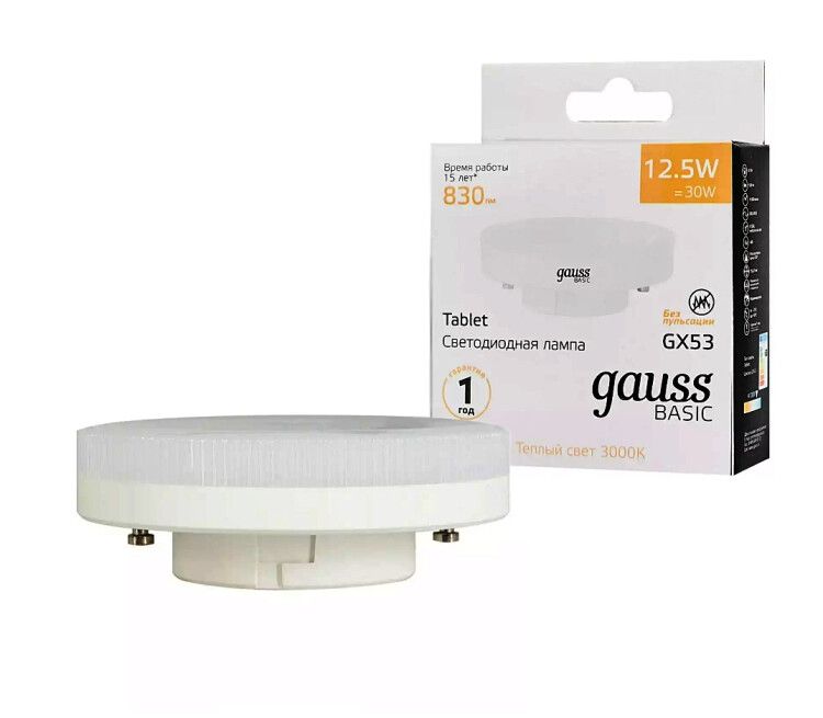 Лампа светодиодная LED 12.5 Вт 830 лм 3000К AC180-240В GX53 таблетка теплая Basic Gauss - 10849132