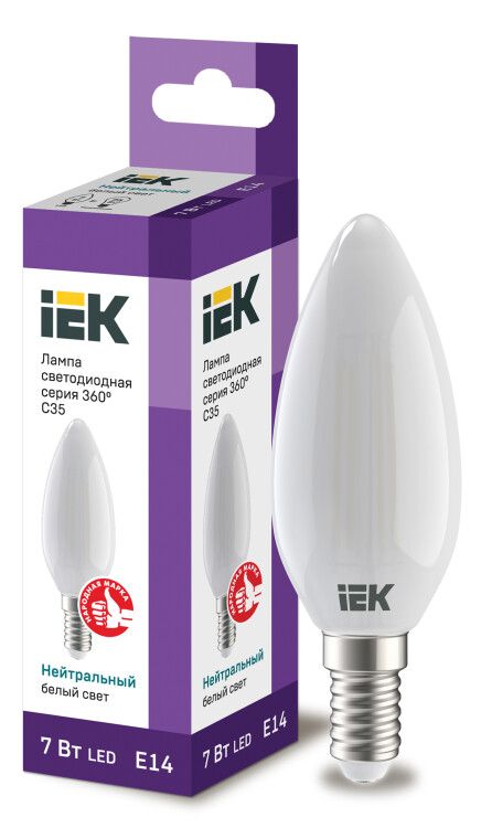 Лампа светодиодная филаментная 360° 7Вт C35 свеча матовая 4000К нейтр. бел. E14 230В IEK LLF-C35-7-230-40-E14-FR