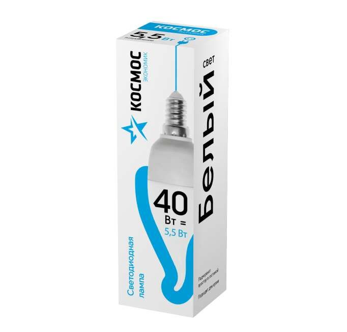 Лампа светодиодная LED КОСМОС lkecled5.5wcwe1445 совместима со всеми светильниками, рассчитанными на цоколь E14 и напряжение 220–240 В. Установка аналогична замене лампы накаливания: выкрутите старую лампу, вставьте новую, поверните против часовой стрелки до фиксации. Не используйте с диммерами - лампа не регулируется по яркости. Проверяйте посадочный диаметр патрона: он должен соответствовать 14 мм. Колба длиной 125 мм требует минимум 130 мм свободного места внутри плафона.