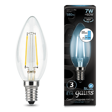 Лампа светодиодная филаментная LED 7 Вт 580 Лм 4100К E14 свеча белая шаговое диммирование Black Filament Gauss - 103801207-S