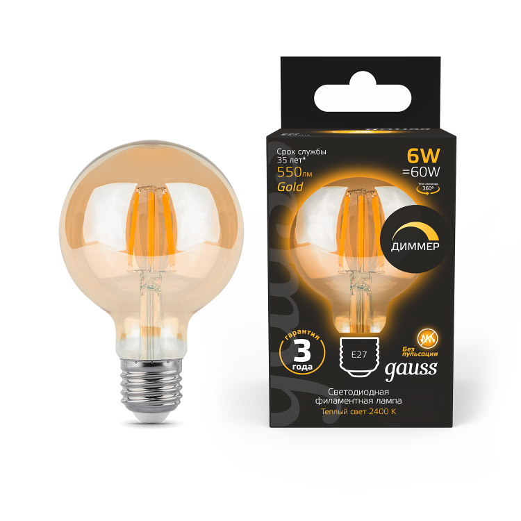 | Лампа светодиодная Filament G95 6W 620lm 2400К Е27 golden диммируемая | 105802006-D | Gauss | 26.02.2026 | Под заказ | 585,68 ₽ | шт. | от 30 дней |