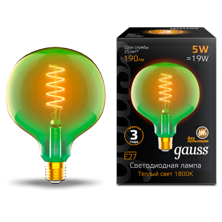 | Лампа светодиодная LED Filament Flexible G125-C Green E27 5W 190lm 1800K 125*178mm 1/10 | 1012802105 | Gauss | 26.02.2026 | Под заказ | 591,19 ₽ | шт. | от 30 дней |