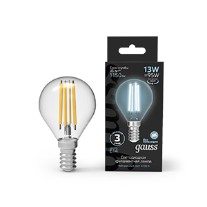 Лампа светодиодная филаментная 13 Вт 1150 лм 4100К шар P45 нейтральный белый E14 AC 220В прозрачная колба от GAUSS - это замена классической лампочке с сохранением её внешнего вида, но с высокой эффективностью и долгим сроком службы. Подходит для открытых светильников, люстр и интерьеров, где важна эстетика.