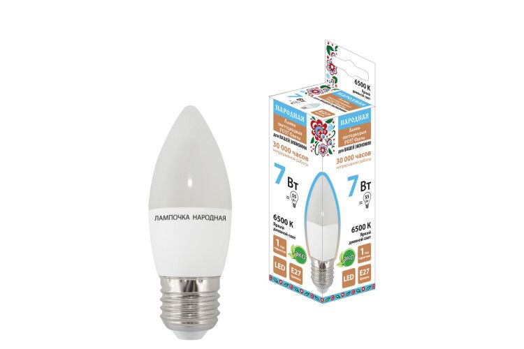 Лампа светодиодная FС37-7 Вт-230 В -6500 К–E27 Народная | SQ0340-1544 TDM