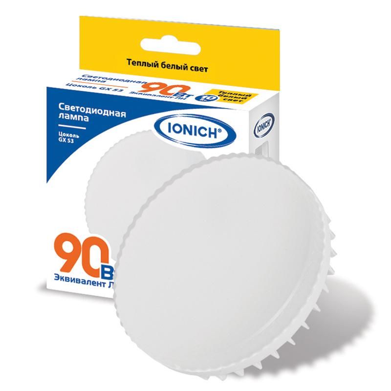 Лампа светодиодная GX53 10Вт 230В 2700К 900лм тепл. бел. IONICH 1135