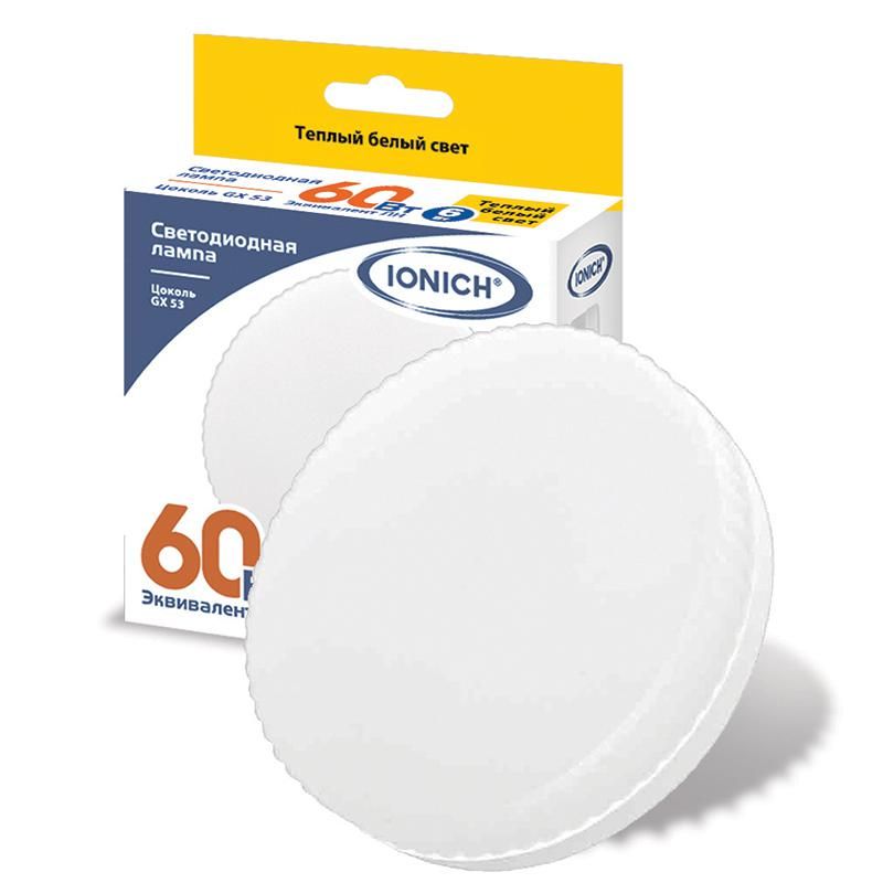 Лампа светодиодная GX53 6Вт 230В 2700К теплый белый свет 540лм ILED-SMD2835-6 от бренда IONICH предназначена для замены галогенных ламп в точечных светильниках с патроном GX53. Она обеспечивает равномерный мягкий свет с высокой эффективностью и долгим сроком службы.