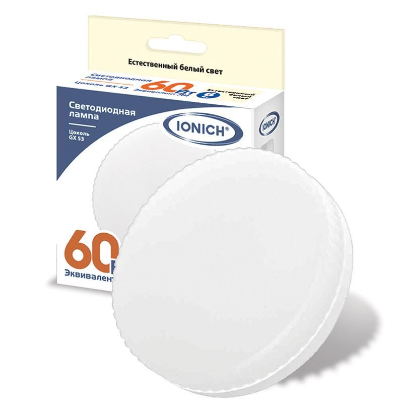 Лампа светодиодная ILED-SMD2835-6-540-230-4 GX53 6Вт 4000К нейтральный белый 540лм 230В - компактный источник света с цоколем GX53, предназначенный для замены галогенных ламп в точечных светильниках потолочного и настенного монтажа. Бренд IONICH обеспечивает надежную работу устройства в бытовых и коммерческих условиях.