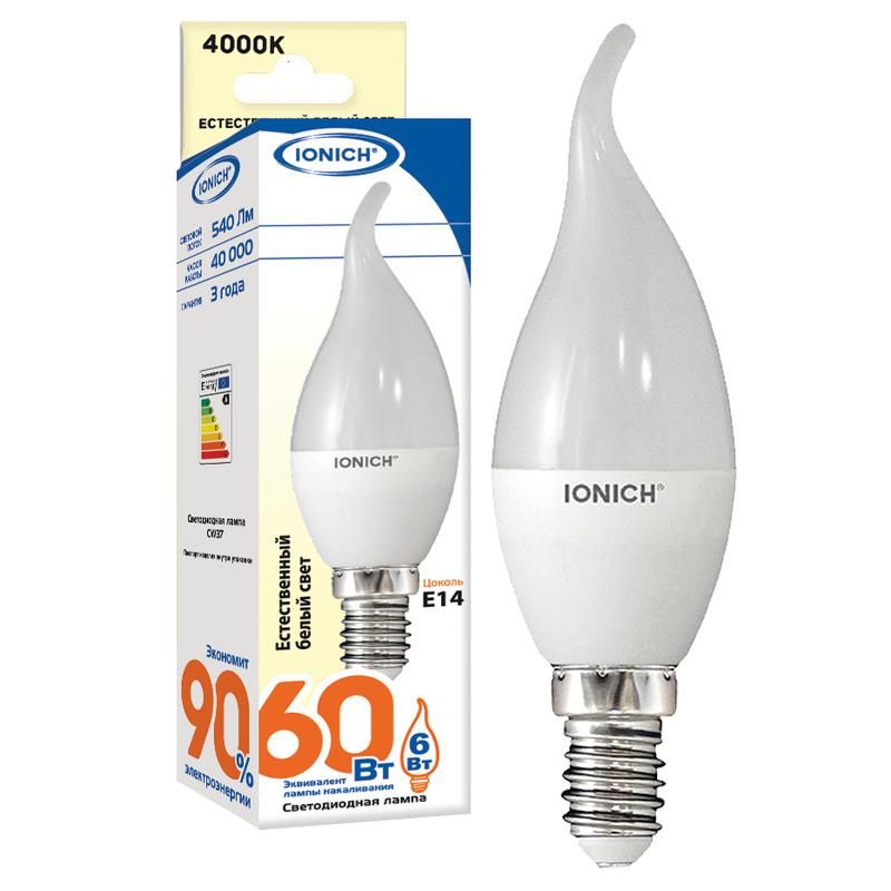 Лампа светодиодная ILED-SMD2835-CW37-6-540-220-4-E14 - компактный источник света с цоколем E14, предназначенный для замены традиционных ламп накаливания в бытовых и декоративных светильниках. Мощность 6 Вт обеспечивает яркость 540 лм при цветовой температуре 4000 К - нейтрально-белый свет, подходящий для помещений с умеренным освещением. Бренд IONICH реализует эту модель как часть линейки энергоэффективных решений для точечного освещения.