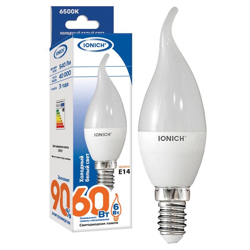 Лампа светодиодная ILED-SMD2835-CW37-6-540-220-6.5-E14 - компактный источник света с цоколем E14, предназначенный для замены традиционных ламп накаливания в декоративных и бытовых светильниках. Бренд IONICH обеспечивает надежную работу при напряжении 230–240 В, а мощность всего 6 Вт позволяет экономить энергию без потери яркости - 540 лм соответствуют освещению старой 40-ваттной лампы.