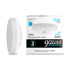 Лампа светодиодная LED 15 Вт 1080 лм 4100К AC180-240В GX53 таблетка нейтральный Elementary Gauss - 83825