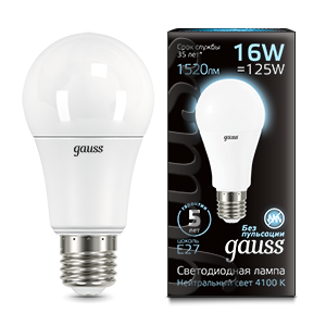 Лампа светодиодная черная 16 Вт A60 грушевидная 4100К нейтральный белый E27 1520 лм от GAUSS заменяет лампу накаливания до 150 Вт, обеспечивая яркий, равномерный свет с высокой точностью цветопередачи. Подходит для бытовых и офисных интерьеров, совместима со стандартными патронами E27.