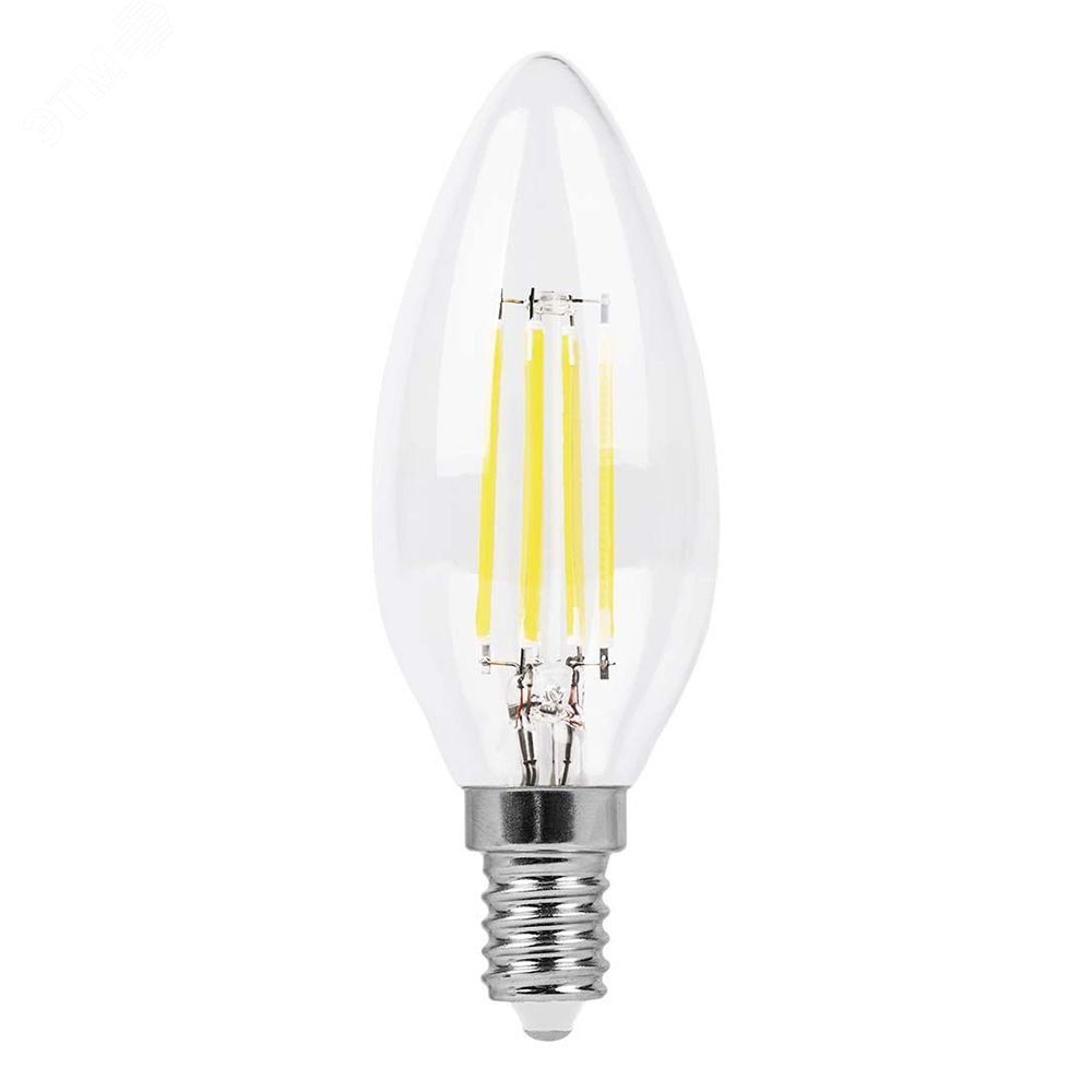 Лампа светодиодная 5 Вт 230 В Е14 2700K филамент C35 прозрачная от FERON - энергоэффективная замена классическим лампам накаливания с видимыми филаментами, подходящая для открытых светильников, хрустальных люстр и интерьеров с акцентом на дизайн источника света.