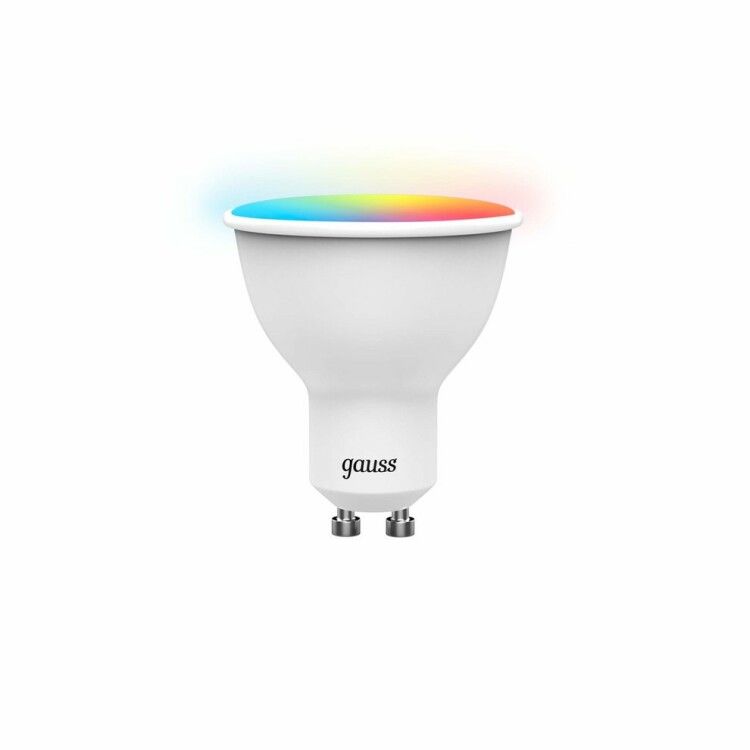 Лампа светодиодная 6 Вт 440 лм RGBW MR16 GU10 AC 220В с диммированием от GAUSS - многоцветный источник света с возможностью регулировки яркости и тона, подходящий для создания гибкой атмосферы в жилых и офисных помещениях. Модель совмещает высокую эффективность, точную передачу цвета и удобство удалённого управления.