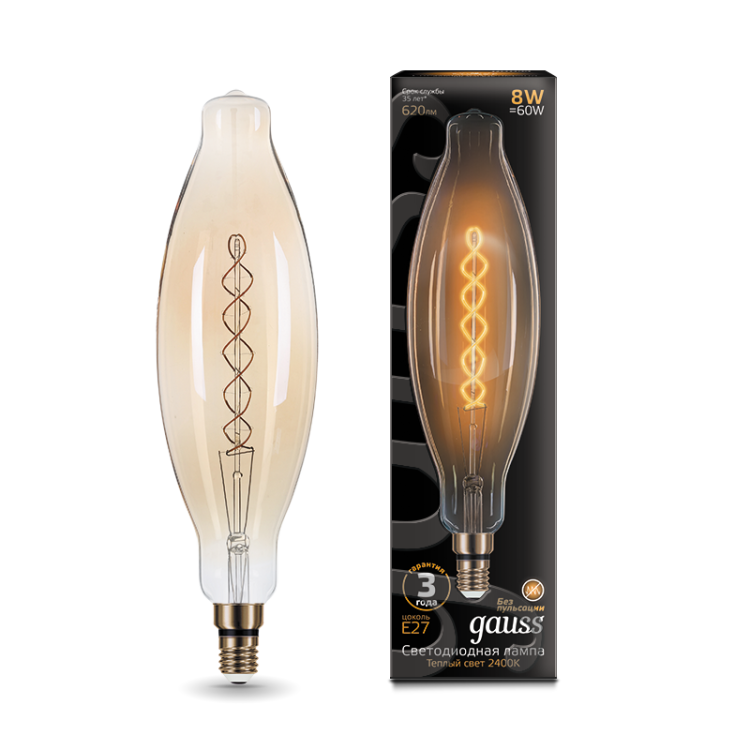 Лампа светодиодная филаментная LED 8 Вт 620 лм 2400К цилиндр/BT120 от GAUSS - это декоративный источник света с классическим внешним видом и высокой эффективностью. Подходит для создания уютного освещения в жилых и общественных помещениях, где важна эстетика и долгий срок службы. Артикул 156802008.