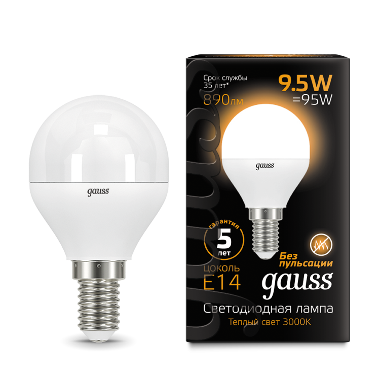 | Лампа светодиодная Black 9.5Вт P45 шар 3000К тепл. бел. E14 890лм GAUSS 105101110 | 22.02.2026 | 1 шт. | 215,4 ₽ | шт. | от 11 дней |