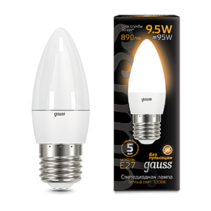 Лампа светодиодная черная 9.5 Вт 890 лм 3000К свеча теплый белый E27 AC 220В от GAUSS - компактный источник света с формой свечи, подходящий для декоративного и функционального освещения в жилых и офисных помещениях. Артикул 103102110 обеспечивает равномерное теплое свечение с высокой цветопередачей и долгим сроком службы.