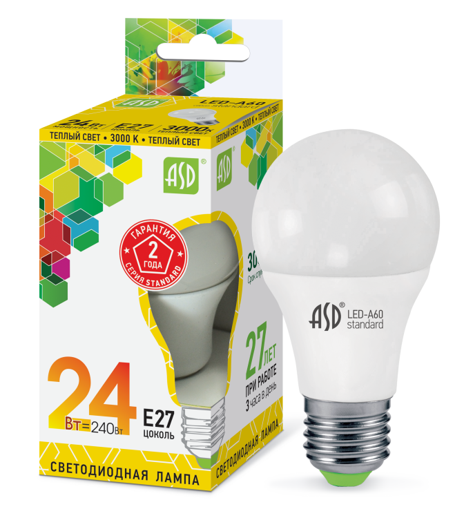 Лампа ASD LED-A65-standard является надежным и энергоэффективным решением для освещения. Она предлагает широкий диапазон мощностей и цветовых температур, чтобы удовлетворить различные потребности освещения в вашем помещении.