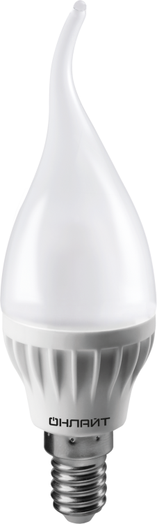 Лампа светодиодная 8 Вт E14 свеча на ветру 6500 К холодный дневной свет 220-240 В 640 лм матовая от бренда ОНЛАЙТ - энергоэффективная замена лампам накаливания для освещения в помещениях с требованием к яркому холодному свету. Артикулы 61196 и 20819 подходят для установки в люстры, бра и торшеры с цоколем E14.