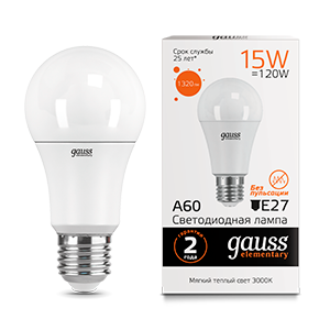 Лампа светодиодная 15 Вт A60 грушевидная 3000К теплый белый E27 1320 лм 220В от GAUSS - энергосберегающая замена лампам накаливания с теплым белым светом, подходящая для повседневного освещения жилых и офисных помещений. Артикул 23215 обеспечивает равномерное рассеивание света благодаря матовому рассеивателю и компактной форме.