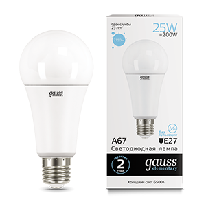 Лампа светодиодная 25 Вт 2150 лм 6500К А70 груша холодный белый E27 220В от GAUSS - это энергоэффективное решение для яркого, равномерного освещения помещений с высокими требованиями к качеству света. Артикул 73235 подходит на замену обычным лампам накаливания и люминесцентным источникам в бытовых и административных зонах.