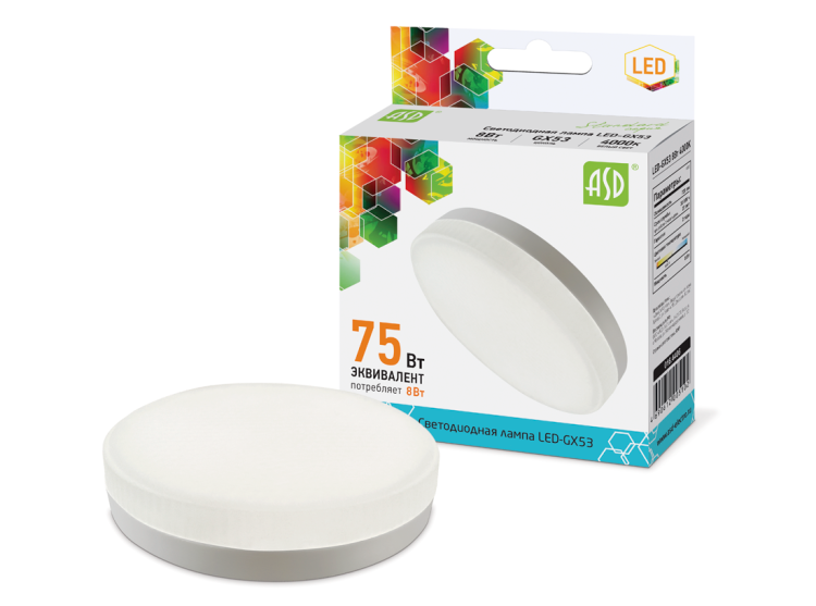| Лампа светодиодная LED-GX53-standard 8Вт таблетка 4000К нейтр. бел. GX53 720лм 160-260В ASD 4690612005102 | 23.02.2026 | Под заказ | 63,9 ₽ | шт. | от 30 дней |