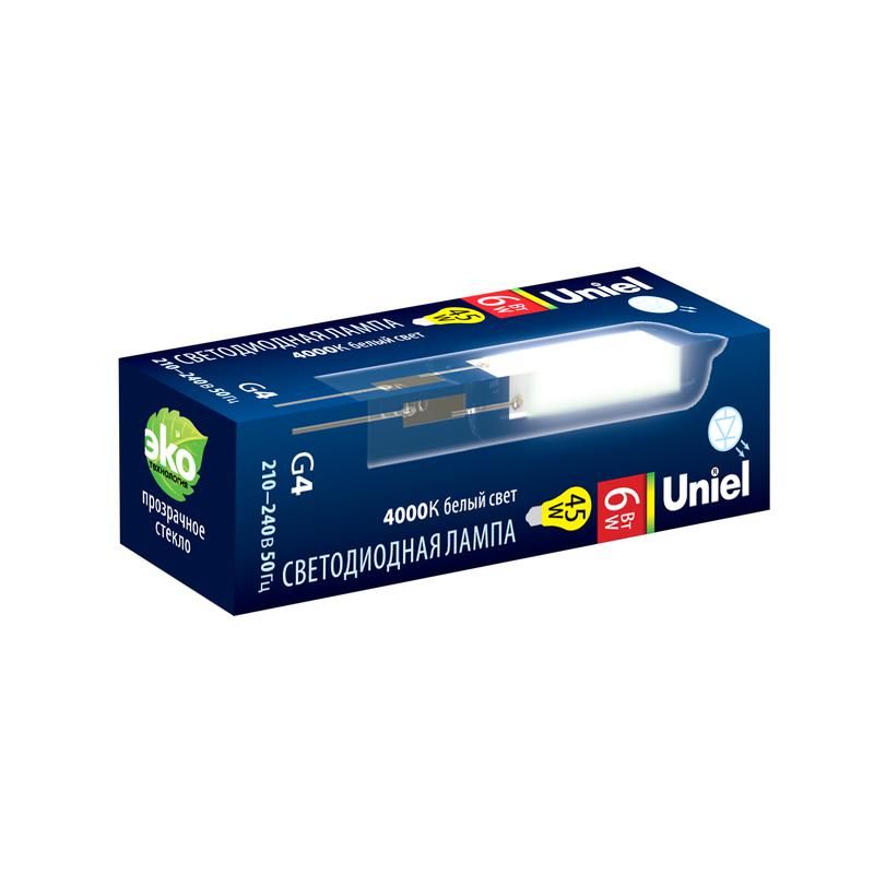 Лампа светодиодная LED JC-220 6W 4000K G4 CL прозрачная от бренда Uniel - компактный источник света с цоколем G4 для замены галогенных ламп в точечном освещении. Подходит для интерьерного и декоративного освещения в жилых и коммерческих помещениях.