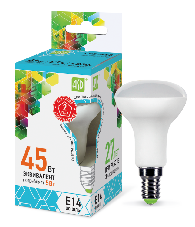 Лампа светодиодная LED-R50-standard 5Вт 4000К нейтр. бел. E14 450лм 160-260В ASD 4690612001517