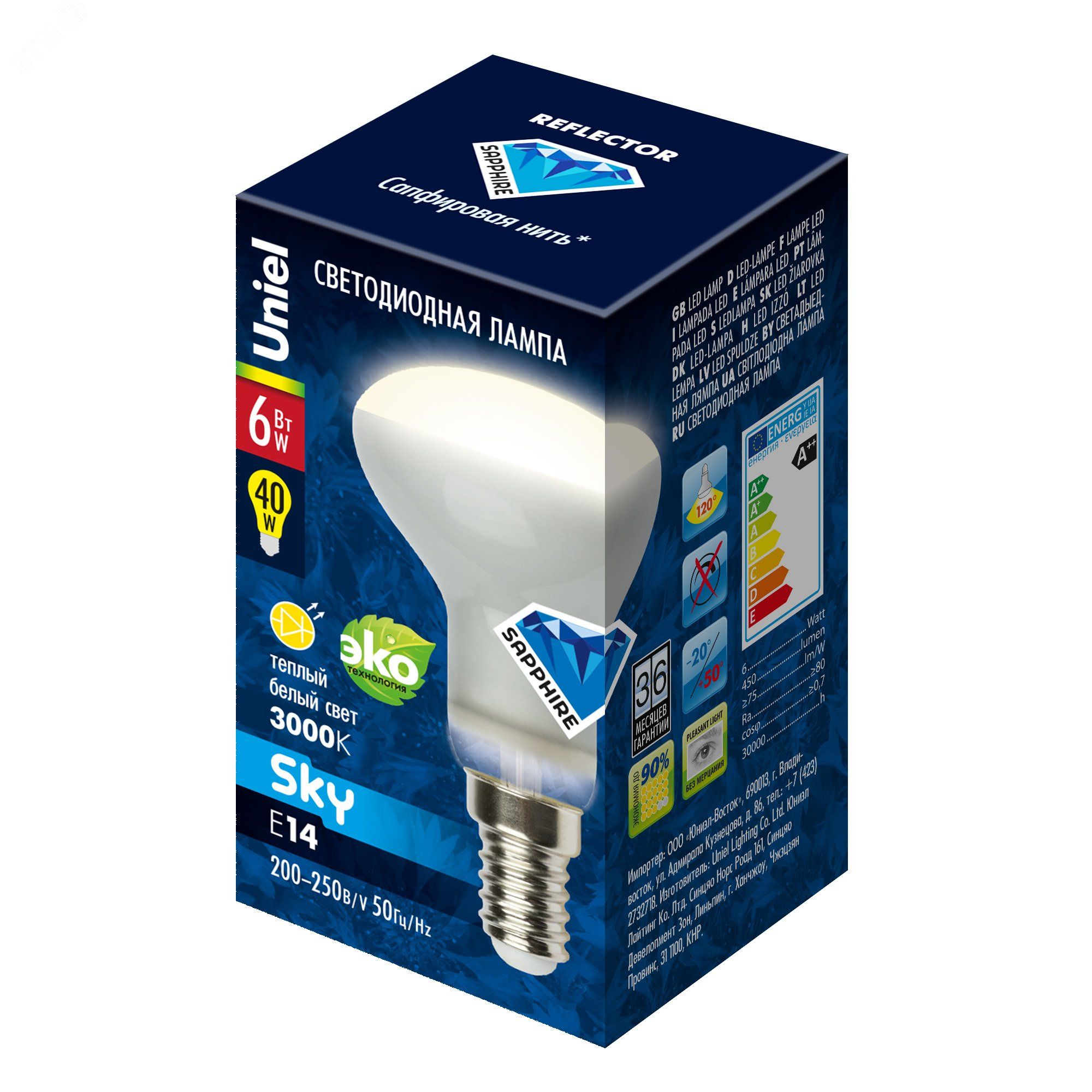 Лампа светодиодная LED-R50-6W/WW/E14/FR PLS02WH Sky 6Вт рефлектор матовая 3000К тепл. бел. E14 (упак. картон) Uniel UL-00001491