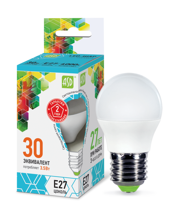 Лампа светодиодная LED-шар-standard 3.5Вт шар 4000К белый E27 320лм 160-260В ASD 4690612002040