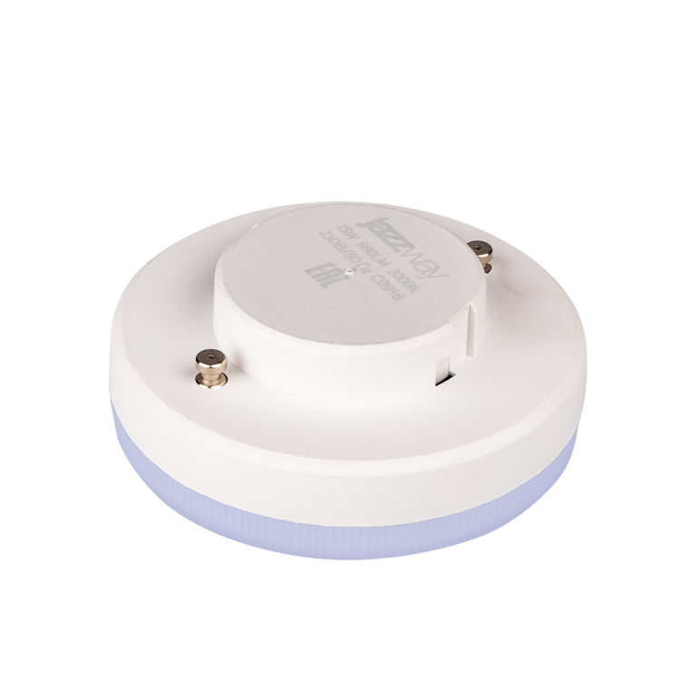 Лампа светодиодная 15Вт GX53 220-230В 3000К теплый белый матовая таблетка от Jazzway - компактное решение для замены галогенных ламп в плоских светильниках. Артикул 2855435 обеспечивает равномерное мягкое освещение в бытовых и офисных помещениях благодаря высокой эффективности и долгому сроку службы.