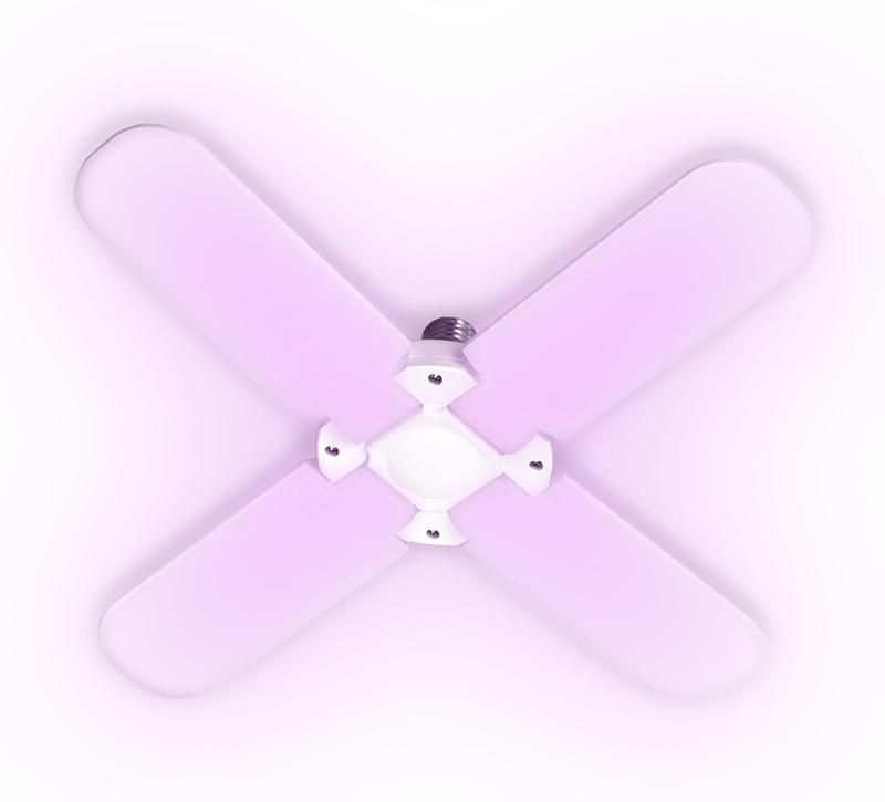 Лампа светодиодная 36 Вт 800 Лм для растений E27 4 лепестка с поворотом 90 градусов красный 650нм/синий 450нм легко заменяет любые лампы с цоколем E27. Устанавливается вручную - просто вкручивается в патрон. Поворотный механизм позволяет изменить направление света без демонтажа. Для равномерного освещения рекомендуется располагать лампу над центром группы растений на высоте 30–60 см. Максимальная продолжительность работы - до 16 часов в сутки, чтобы не нарушать биологические ритмы растений.