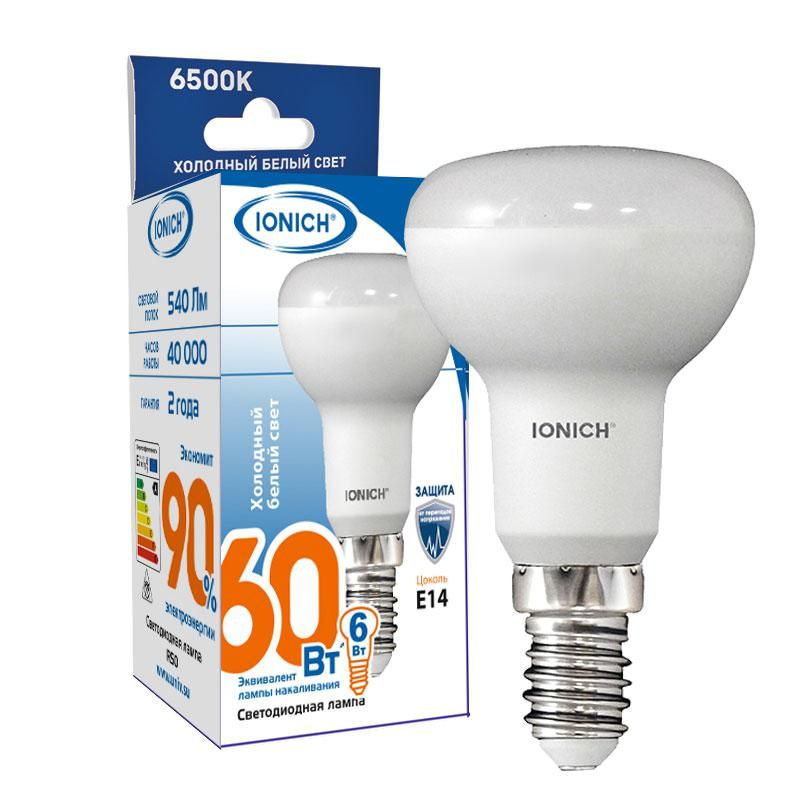 Лампа светодиодная R50 6Вт 6500К E14 540лм 230В холод. бел. IONICH 1795