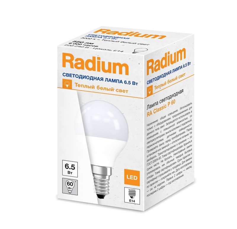 | Лампа светодиодная RA Classic P60 6.5W/830 6.5Вт шар матовая 3000К тепл. бел. E14 550лм 220-240В FS1 RADIUM 4008597191794 | 26.02.2026 | Под заказ | 15,37 ₽ | шт. | от 30 дней |