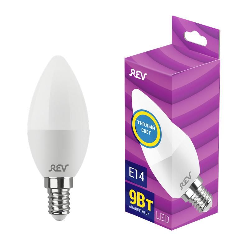 Лампа светодиодная С37 E14 9 Вт 675 лм 2700 К теплый свет свеча от REV с артикулом 32410 2 заменяет классические лампочки накаливания, обеспечивая равномерный мягкий свет в декоративных и бытовых светильниках. Её компактная форма и низкое энергопотребление делают её удобной для установки в люстрах, бра и настольных lamps.