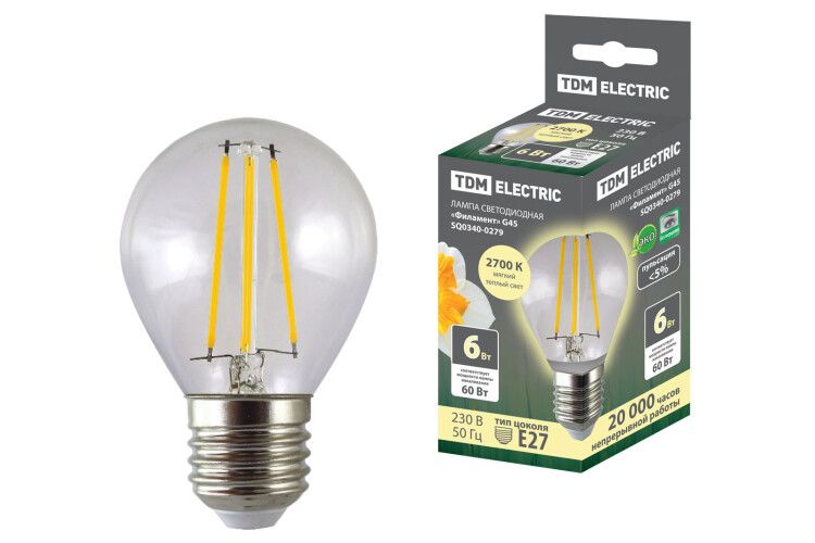 | Лампа светодиодная шар "Филамент" G45-6 Вт-230 В-2700 К–E27 TDM | SQ0340-0279 | TDM | 06.03.2026 | Под заказ | 90,07 ₽ | шт. | от 30 дней |