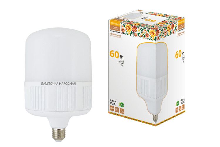 Лампа светодиодная T-60 Вт-230 В-4000 К–E27 (160x265 мм) НАРОДНАЯ | SQ0340-1583 TDM