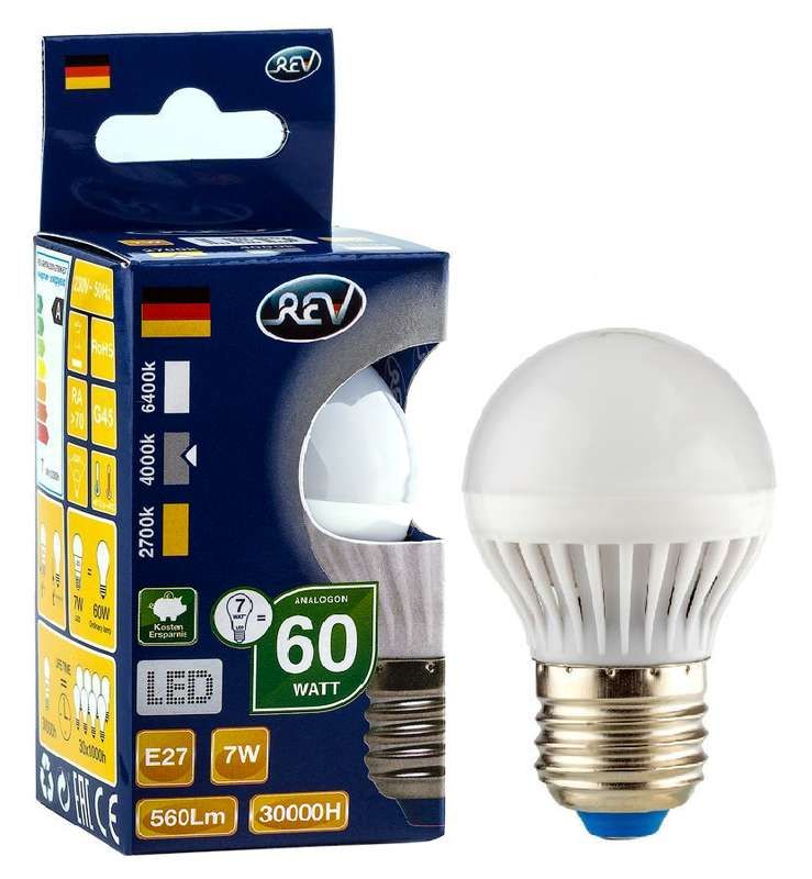 Лампа светодиодная 7Вт G45 шар 4000К нейтр. бел. E27 600лм 180-240В REV 32343 3 не поставляется, возможно товар снят с производства, по запросу, наши инженеры помогут подобрать аналоги, замены.
