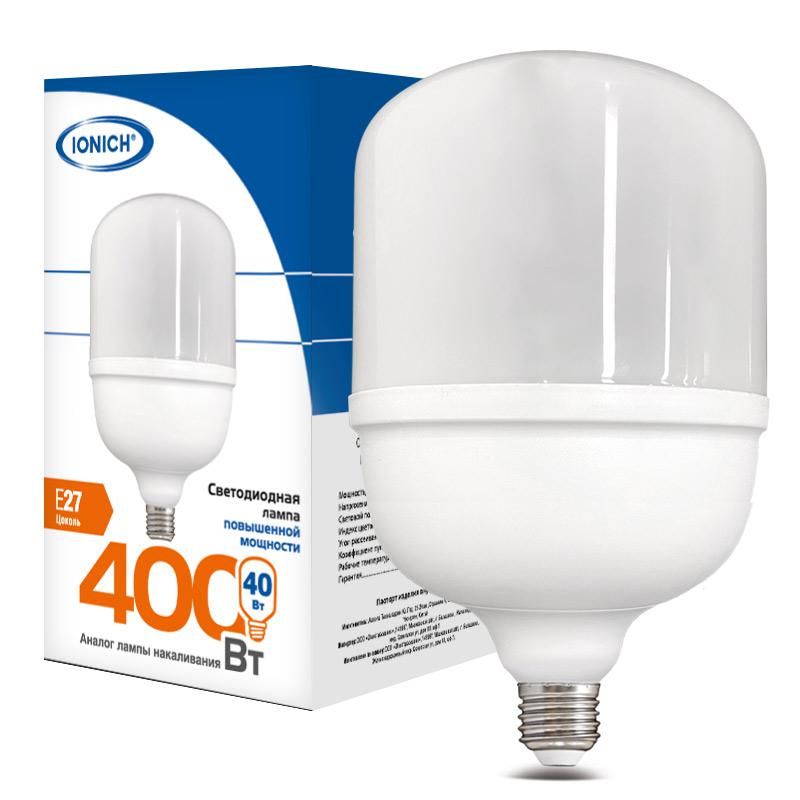 | Лампа светодиодная высокой мощности ILED-SMD5730-Т120-40-3600-220-6.5-E27 40 Вт 6500К холод. бел. 3600лм E27 220В IONICH 1618 | 20.02.2026 | 8 шт. | 250,01 ₽ | шт. | от 10 дней |