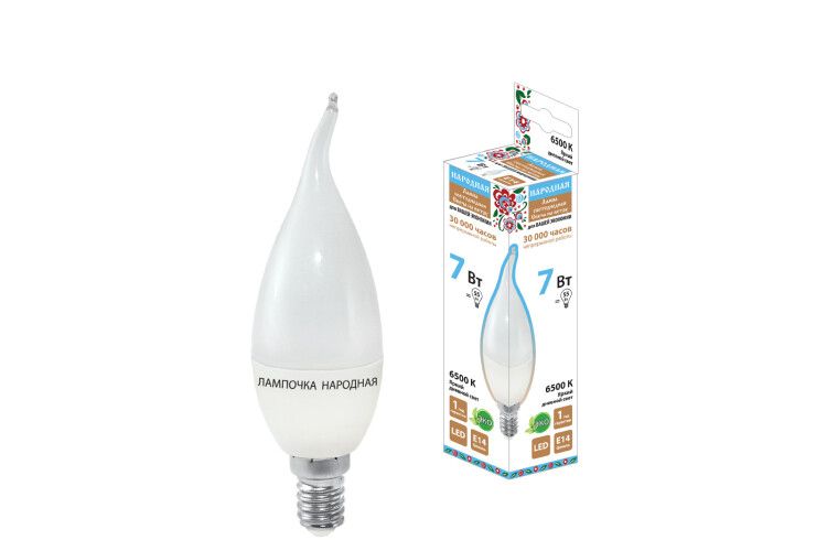 Лампа светодиодная WFС37-7 Вт-230 В -6500 К–E14 (свеча на ветру) Народная | SQ0340-1545 TDM