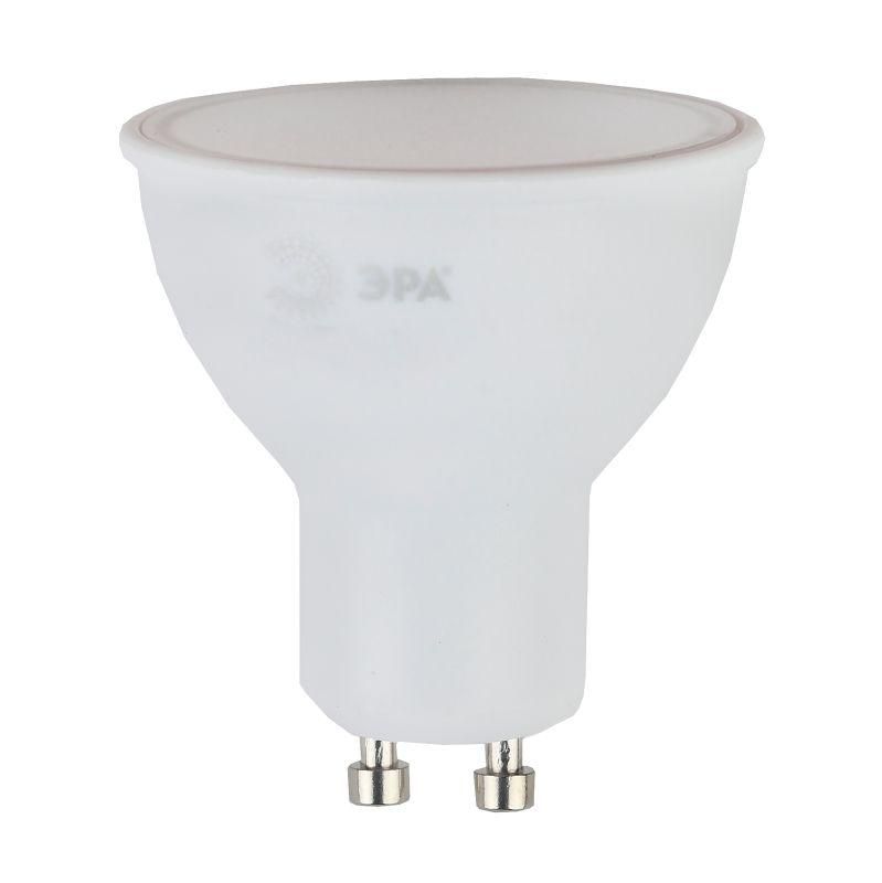 Лампа светодиодная LED 7 Вт 560Лм 2700К теплый белый GU10 MR16-7W-827-GU10 от бренда ЭРА - компактная замена галогенным лампам с цоколем GU10, обеспечивающая равномерное тёплое освещение в бытовых светильниках при минимальном потреблении энергии.