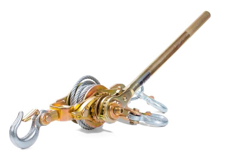 Устройство оснащено усиленным фрикционно-храповым механизмом с переключателем, который позволяет точно контролировать движение троса: шаг за шагом как вперед, так и назад. Это особенно важно при выравнивании натяжения между несколькими пролетами. Фиксация кабеля происходит через проходной чулок, затягиваемый стальным тросом - такой способ предотвращает соскальзывание и повреждение изоляции. Корпус выполнен из цельной стали, без пластиковых элементов, что гарантирует долговечность в условиях повышенной влажности и температурных колебаний.