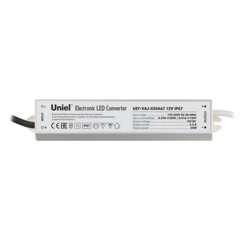 | Блок питания для светодиодов с защитой от короткого замыкания и перегрузок, UET-VAJ-030A67 алюм. корпус, 30Вт, 12В, IP67 | 10587 | Uniel | 10.03.2026 | Под заказ | 882,16 ₽ | шт. | от 30 дней |